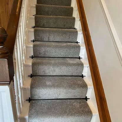You can accessorise your stair runner, again to how you like it. Stair rods, clips, studs in many designs and finishes are all available to elevate your stair runner one step further. Below is a customer’s stairs, who had their runner whipped. Then they have added a black iron stair rod to really set the stair runner off. This makes the stair carpet look more elegant, whilst not being too overpowering at the same time. If you would like an more information on stair rods, or prices, please contact us HERE, and we can help.