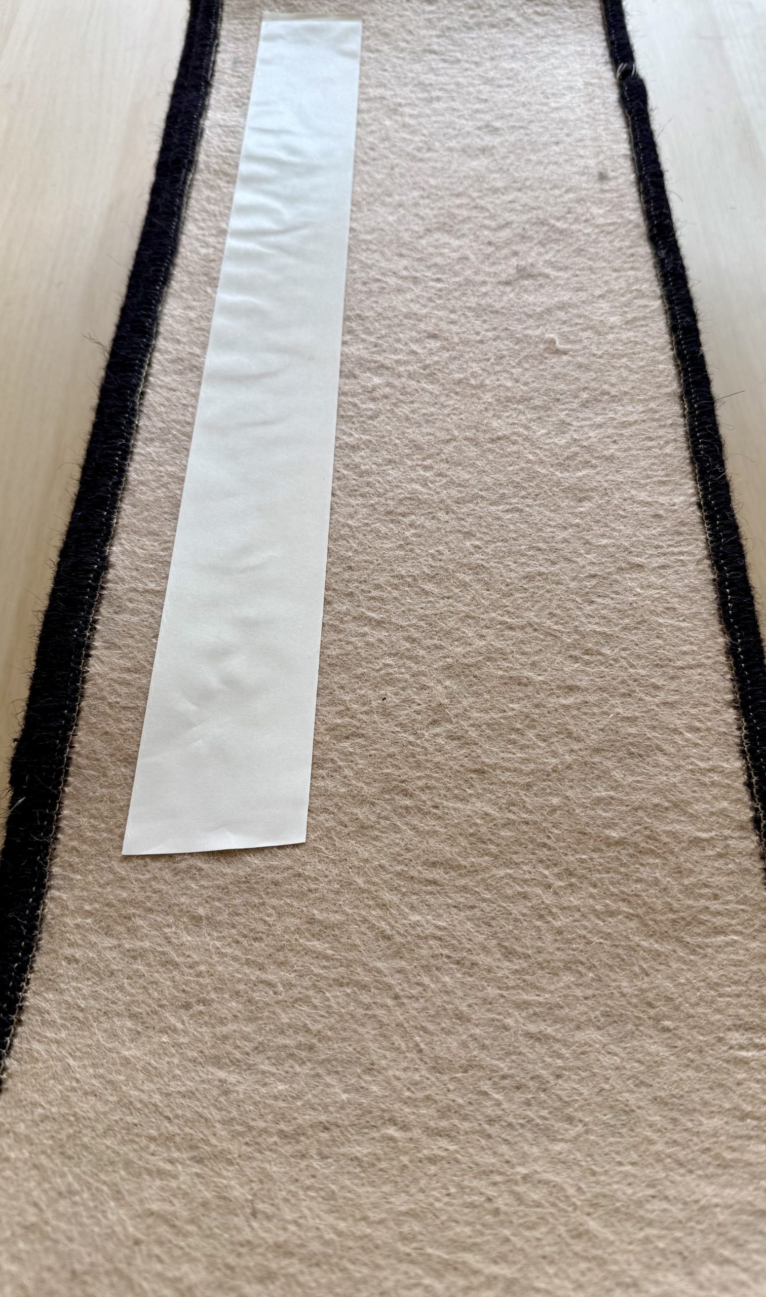 We have attached a length of double-sided tape to each stair pad. However, this is to be used as a guide and not the sole means of affixing the pad to the stairs.